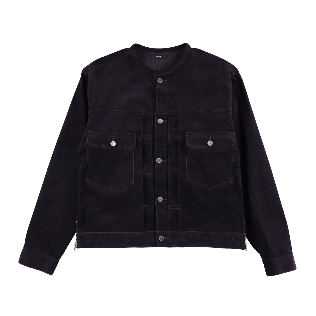 通称”Tバック”と呼ばれる52サイズ以上のデニムジャケットをイメージソースに、THE ENDのデザインとコンセプトを元に、デニムへの造詣と愛の深い、STABILIZER GNZ矢實朋氏にパターンを依頼し作製致しました。着こなしに自由度を与える為の両サイドジップは5号タロンジップを使用。セカンドディティールをベースに、首周りはアレンジのしやすいカラーレスのデザインに。Tバックのデニムジャケットをよりデイリーにする為に、やや長めの着丈バランスに仕上げ、未来へのビンテージディティールを考察しています。TバックのデニムジャケットはXX品番に”E”の文字が付いています。そこからの引用で、”E”-JEAN JACKET、Eジーンジャケット、イージージャン、良いジージャン!・・・という駄洒落スタイルでのネーミングです。(すみません!) 0001は縦横糸全てブラックの12oz耳付きオールブラックデニム、0002は12oz耳付きインディゴデニム、0003はデイリーにコーディネートしやすく、とても綺麗な発色の14WネイビーTCコーデュロイです。